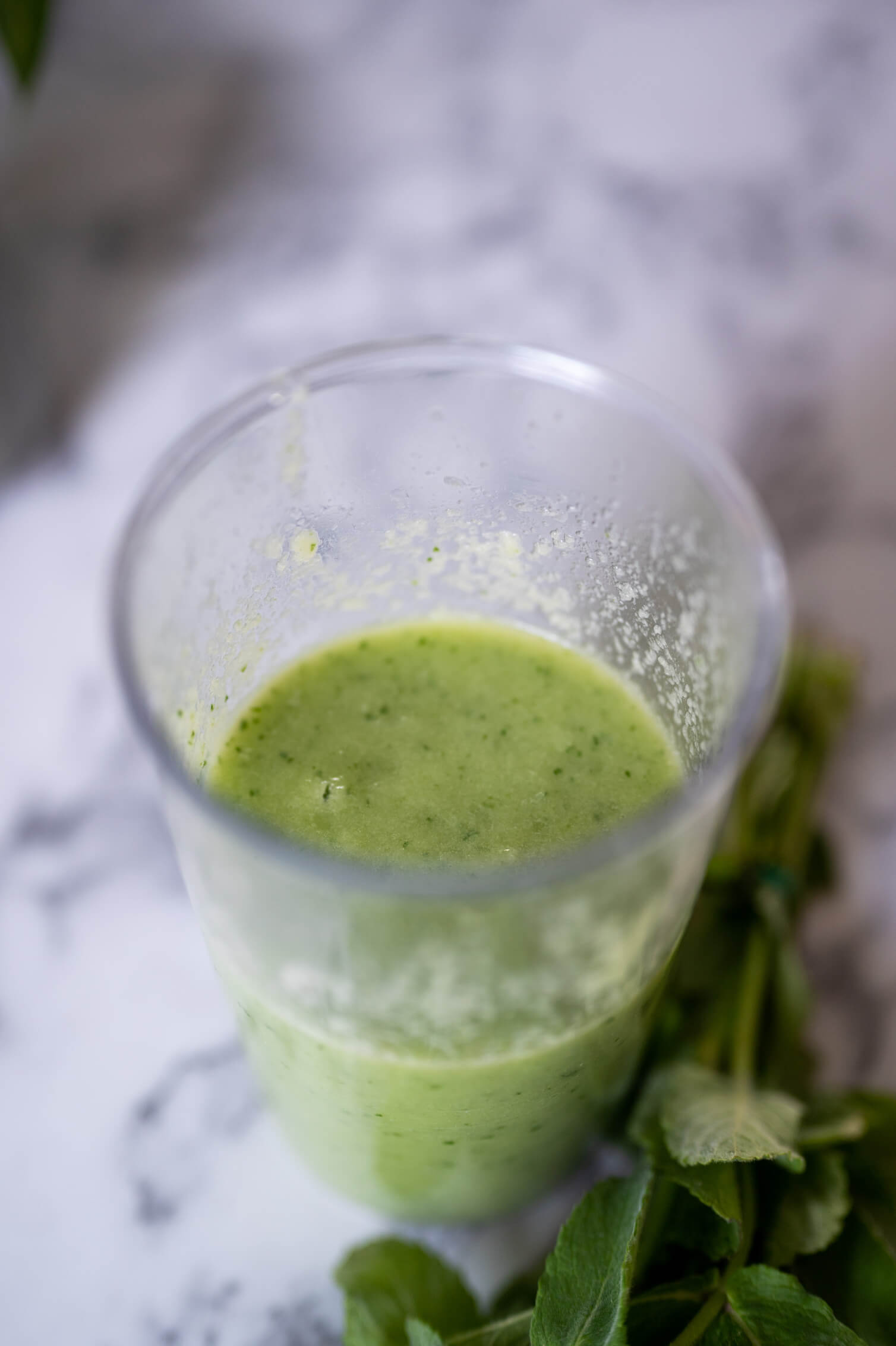 - Na końcu dolewamy oliwę (zostawiamy 1 łyżkę), solimy i ponownie blendujemy.