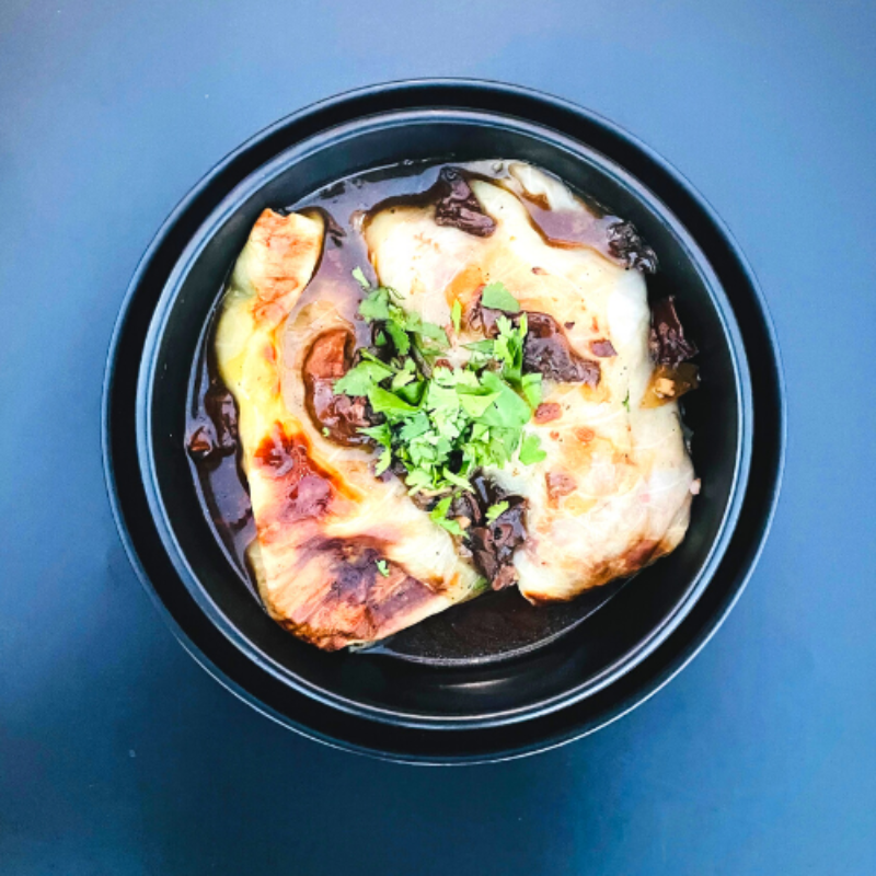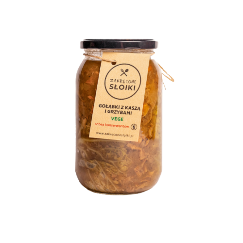 Delikatne gołąbki przygotowane z liści kapusty, wypełnione aromatycznym farszem z niepalonej kaszy gryczanej oraz mieszanki podgrzybków i borowików. Naturalnie doprawione solą i pieprzem, duszone w bulionie warzywnym, dzięki czemu są miękkie, soczyste i pełne smaku. Całość delikatnie zagęszczona mąką ziemniaczaną i wykończona śmietanką ryżową, co nadaje potrawie aksamitności oraz sprawia, że jest odpowiednia również dla osób unikających nabiału. Idealne jako lekkie, pożywne danie obiadowe.