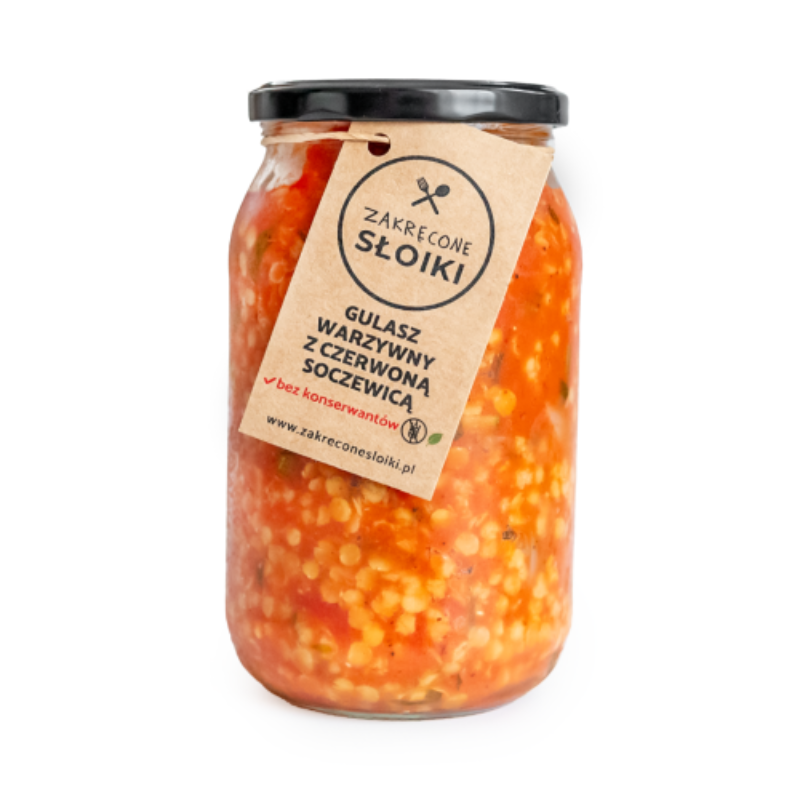 Wegański gulasz z czerwoną soczewicą i warzywami to pożywne, aromatyczne danie bez mięsa, stworzone z myślą o osobach szukających zdrowych i roślinnych alternatyw. W składzie znajdziesz bogatą w białko czerwoną soczewicę, pieczonego bakłażana, cukinię, paprykę, pomidory, cebulę i czosnek. Całość doprawiona jest świeżą bazylią, tymiankiem oraz szczyptą chili, które dodają lekko pikantnego charakteru. Naturalnie doprawiony solą i pieprzem, bez konserwantów i sztucznych dodatków. To gotowe danie, które doskonale sprawdzi się solo lub ulubionym dodatkiem. Rozgrzewający, sycący, w 100% roślinny gulasz na każdą okazję.